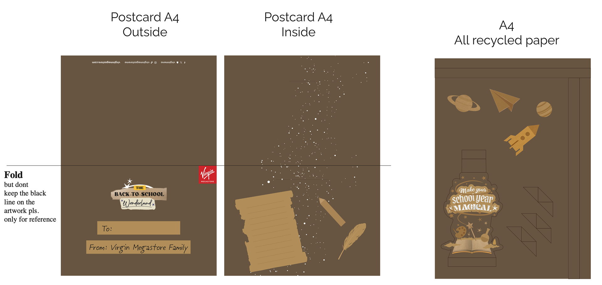 The box was designed to look like an old school desk: simple and mysterious on the outside, but bursting with color and magic inside to reflect the campaign’s “Magic Wonderland” theme. Inside, recipients found a handcrafted postcard with elements that were cut, folded, and assembled by hand — adding a personal, playful touch to the unboxing experience. The design ended with a small handwritten note at the bottom, like a secret discovery waiting to be found.