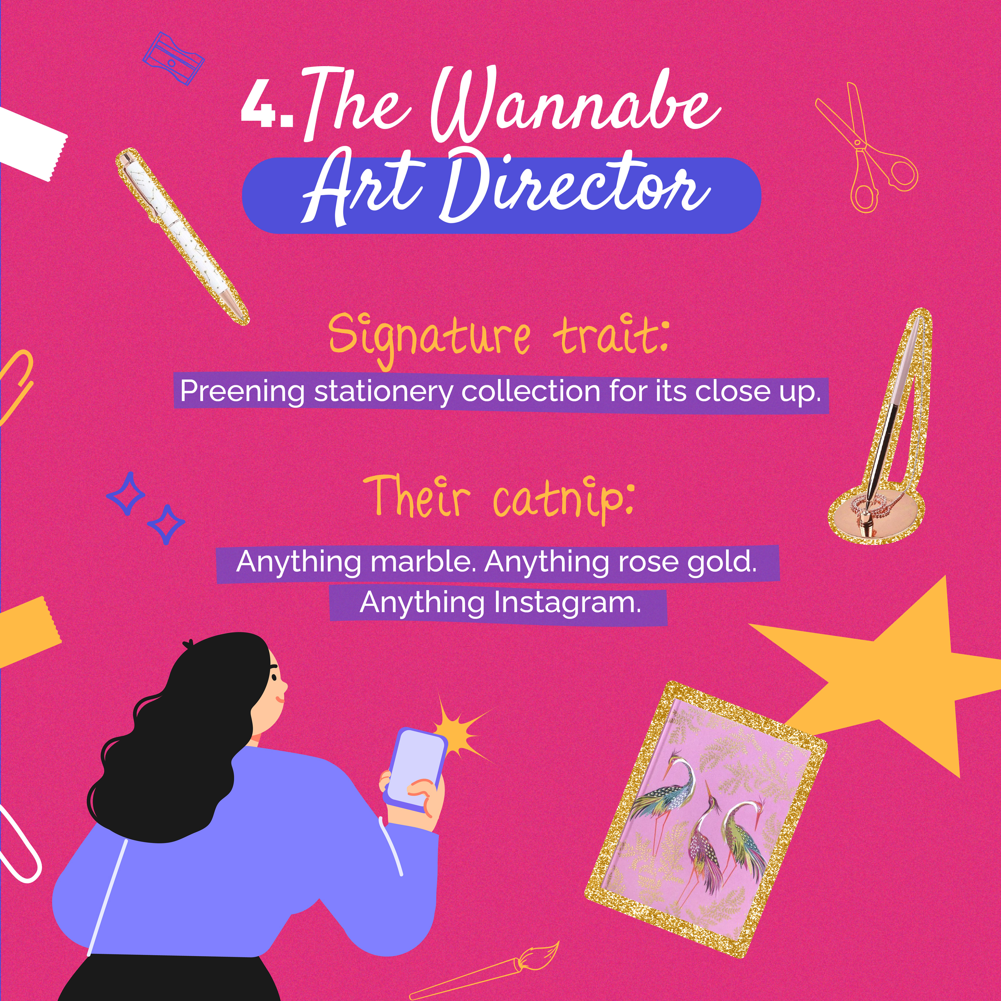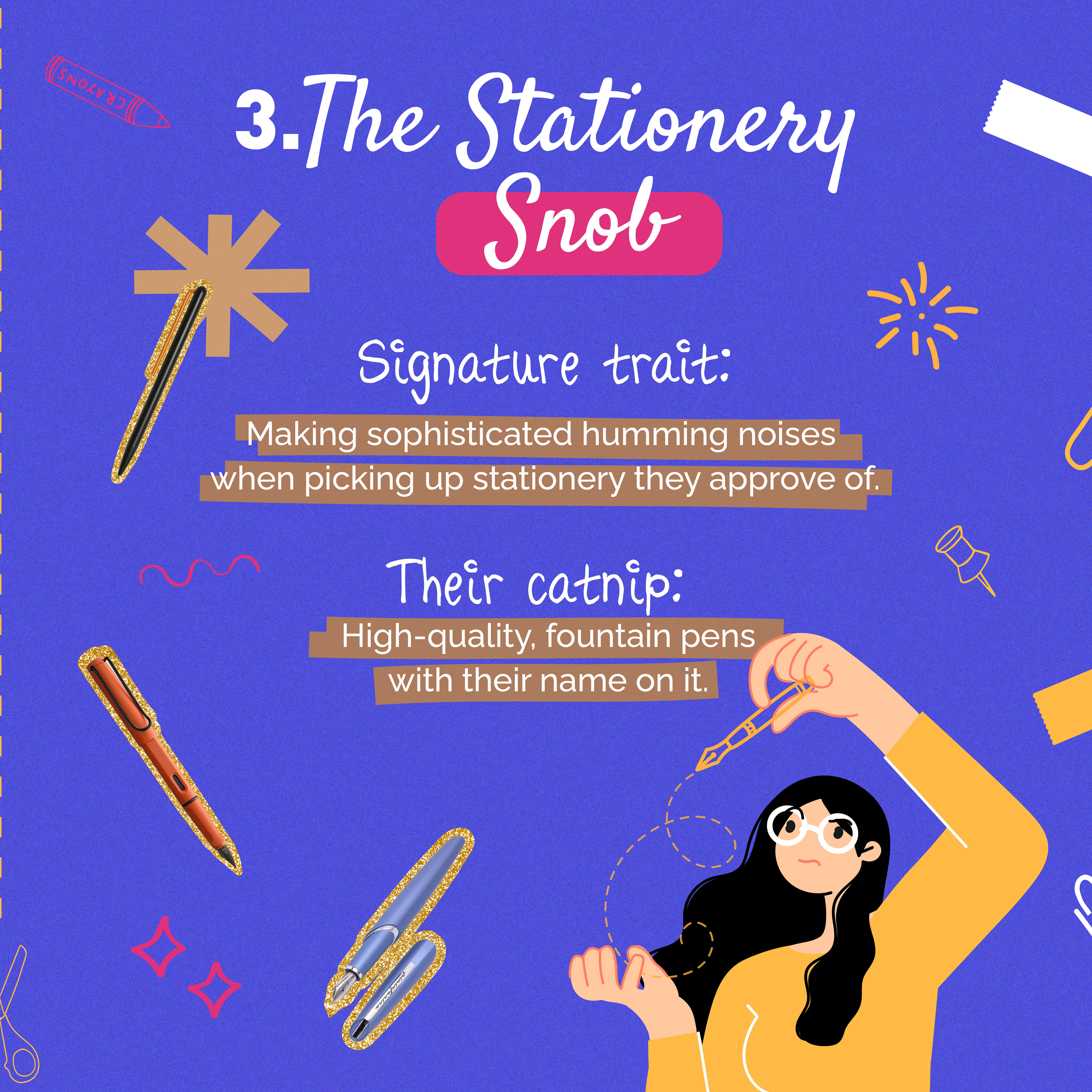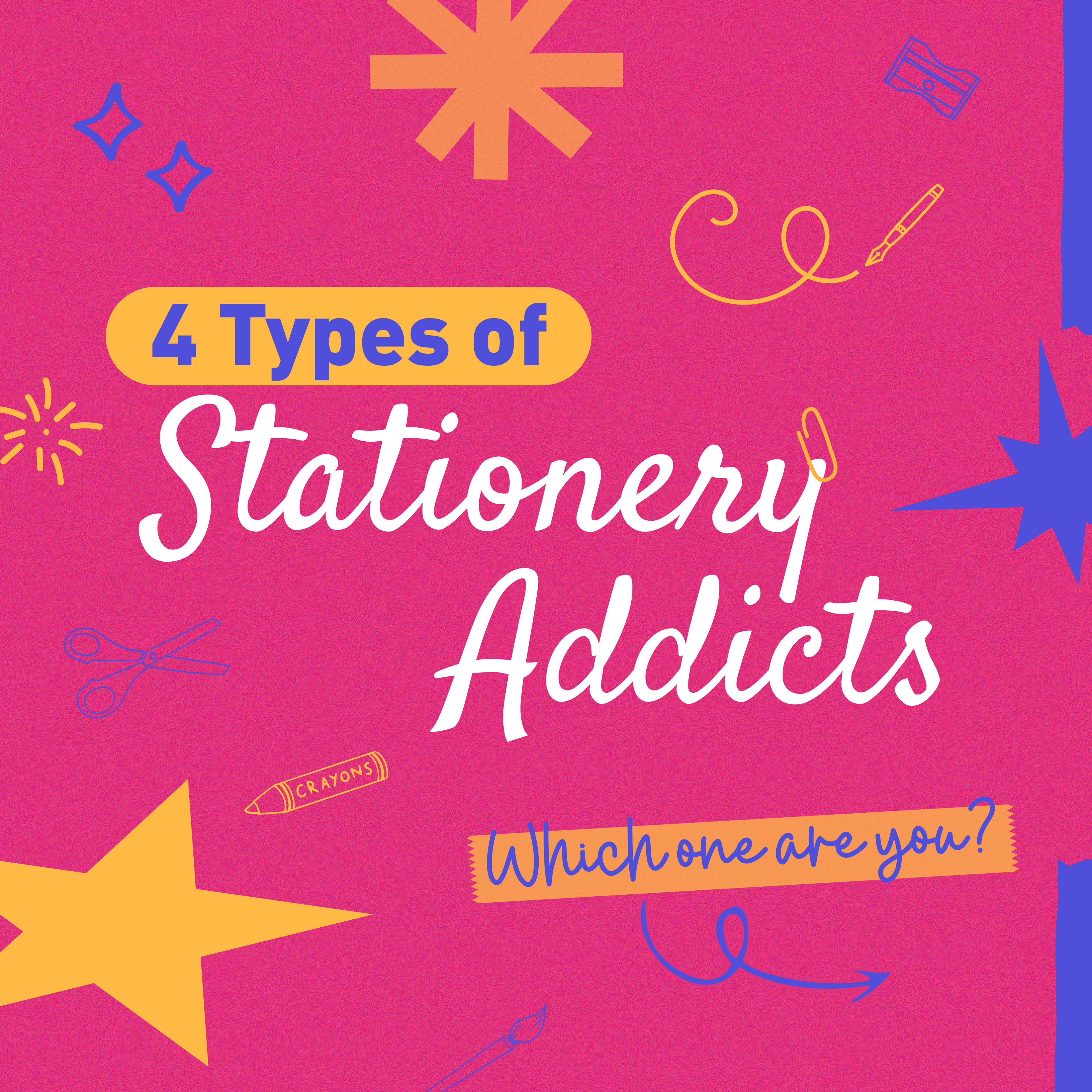 A playful Instagram carousel celebrating different types of stationery lovers. Designed as one continuous artwork, each slide connects seamlessly to the next, creating a cohesive and visually engaging scroll experience.